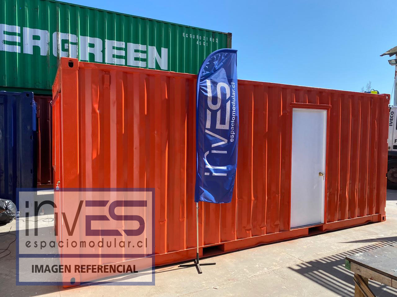 COFMB20P CONTAINER OFICINA + MEDIO BAÑO + PROTECCION 20 PIES 6,00 m 2,44 m 2,59 m Producto nuevo, fabricado por Espacio Modular. $5.410.000+ IVA Ver mas