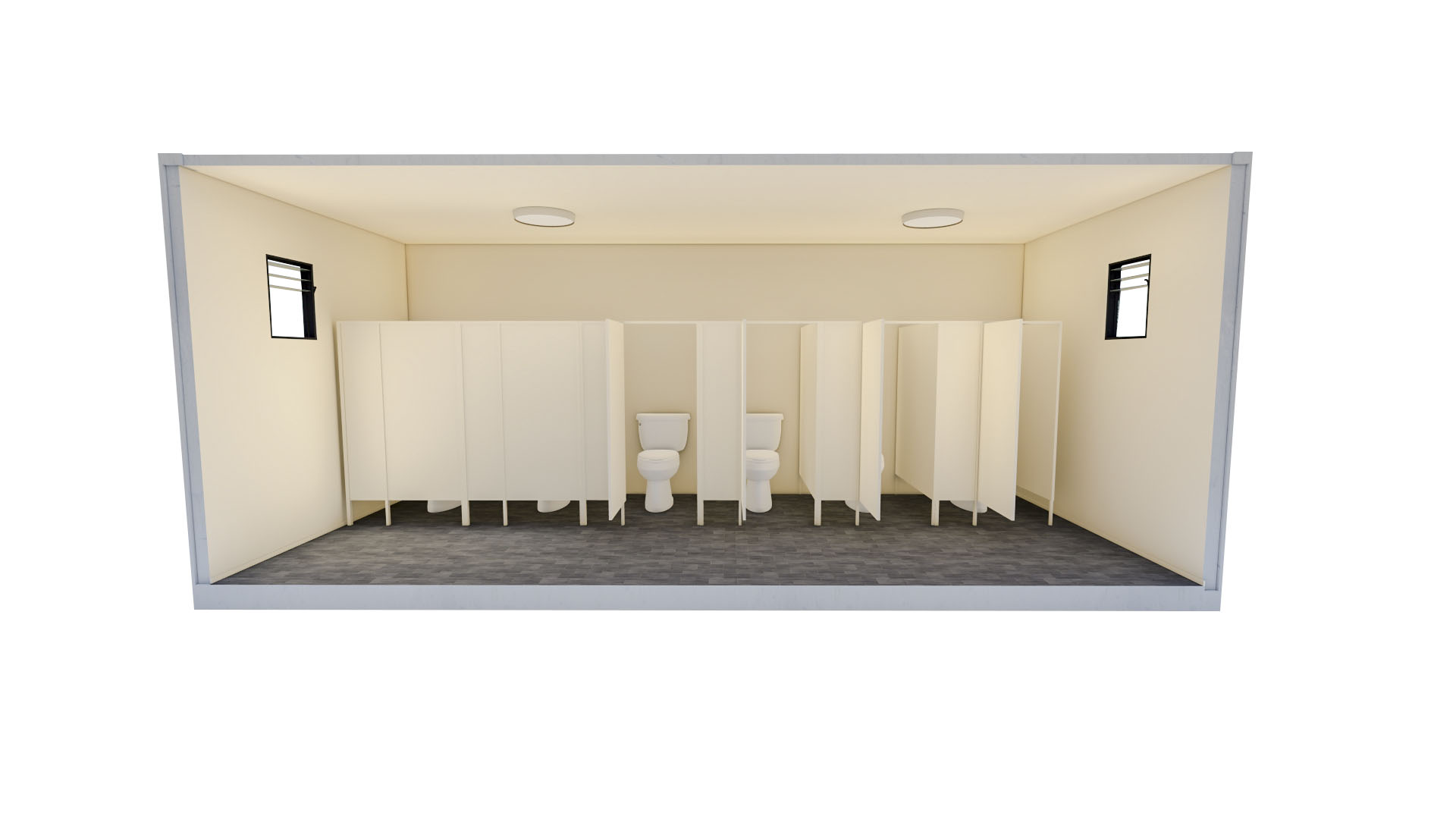 MB40ST-BB MÓDULO BATERIA DE BAÑOS 40 PIES 12,00 m 2,45 m 2,59 m Producto nuevo, fabricado por Espacio Modular. $13.250.000+ IVA Ver mas