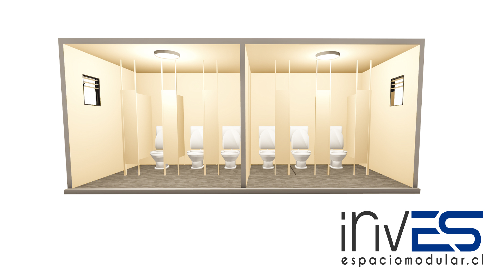 MB20ST-MH MÓDULO BAÑOS SEXOS M/H 20 PIES 6,00 m 2,45 m 2,59 m Producto nuevo, fabricado por Espacio Modular. $7.480.000+ IVA Ver mas