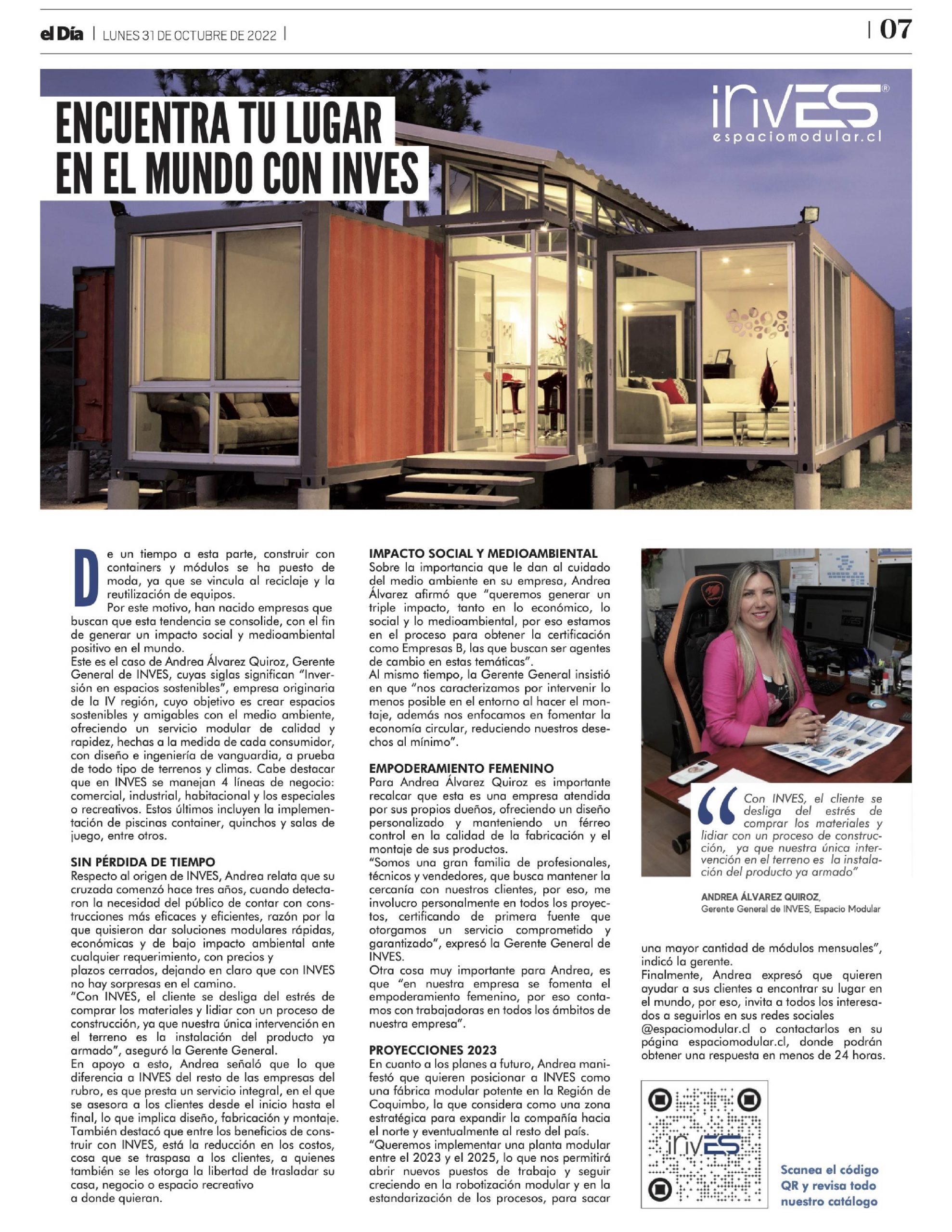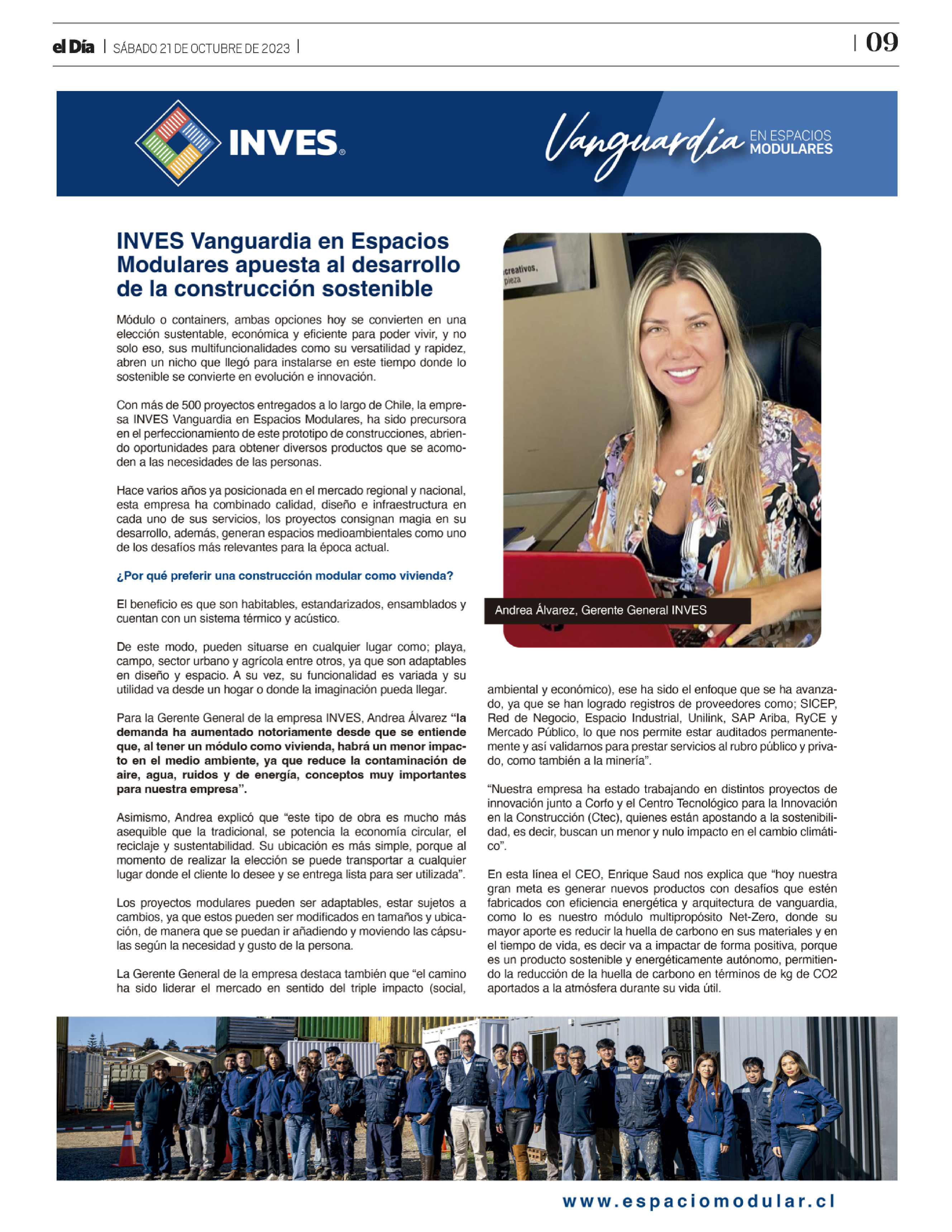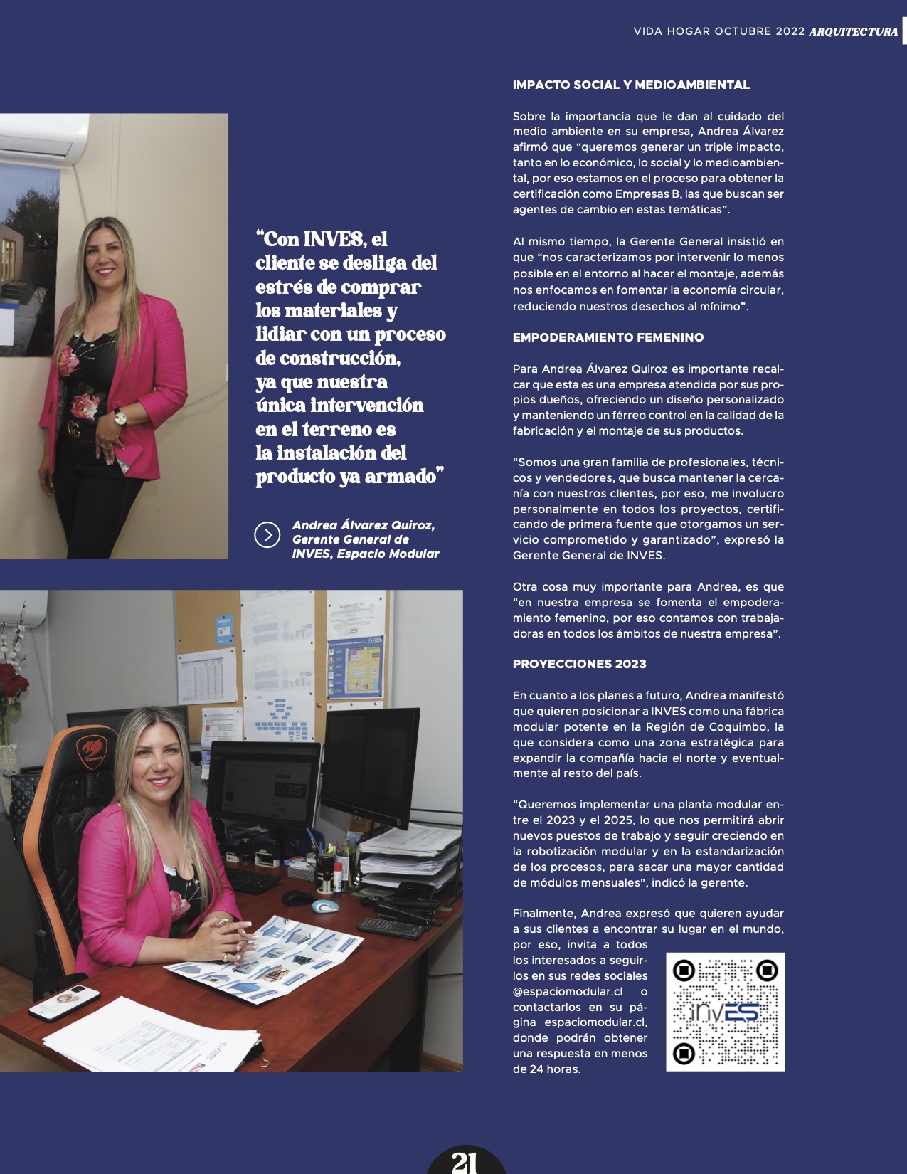 Andrea Álvarez, Gerente General de INVES Espacio Modular, cuenta a Seminario Tiempo sobre el innovador módulo NET Zero, de baja huella de carbono.