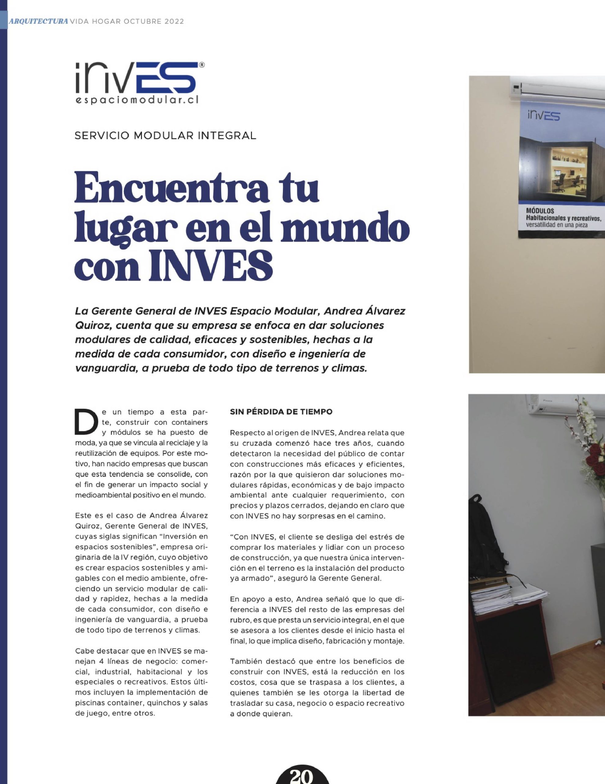 Publicación en Semanario Tiempo sobre el lanzamiento de la nueva línea habitacionalINVES Home y sus nuevos productos de vanguardia