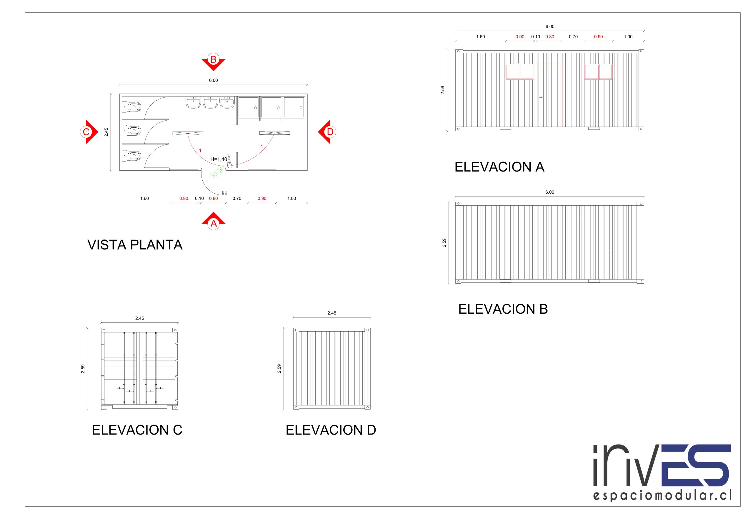 Oportunidad: Container de baños mixtos con lavamanos y WC. Producto elaborado por INVES Espacios Modulares.