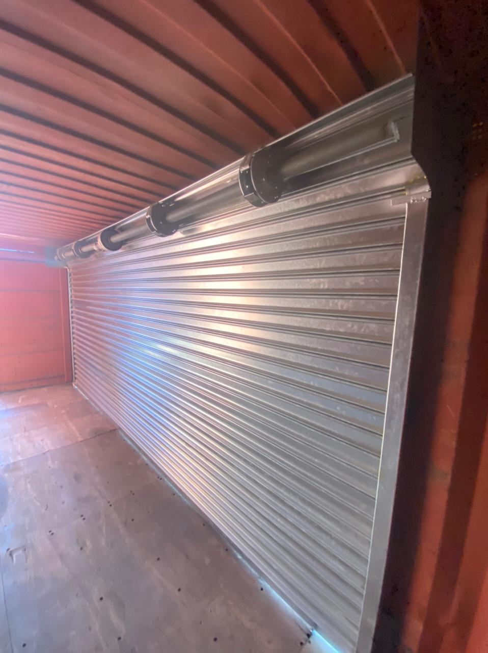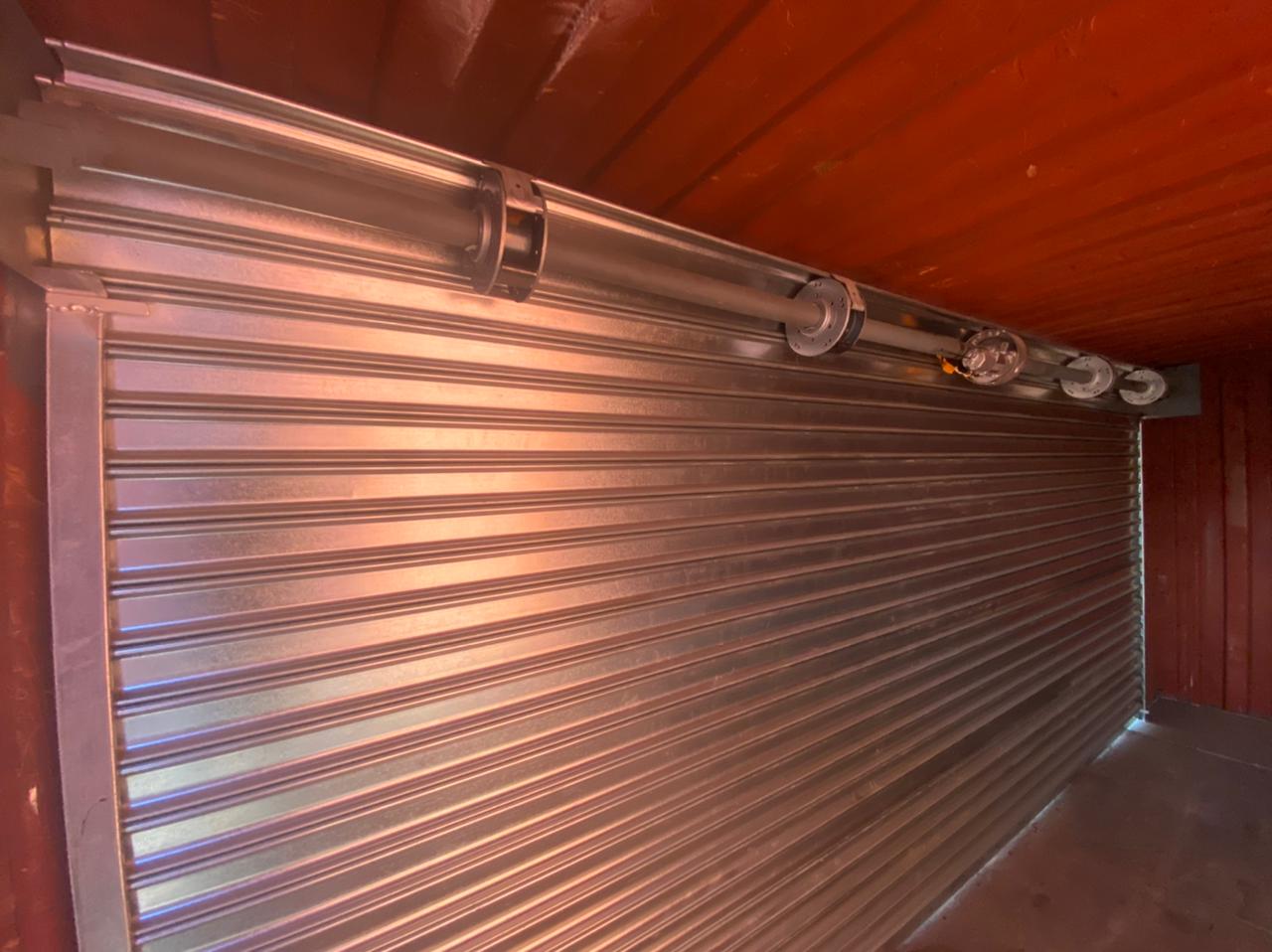 Container Kiosko con cortina automática. Producto modificado por Espacio Modular en Containers Dry 20 pies estándar.
