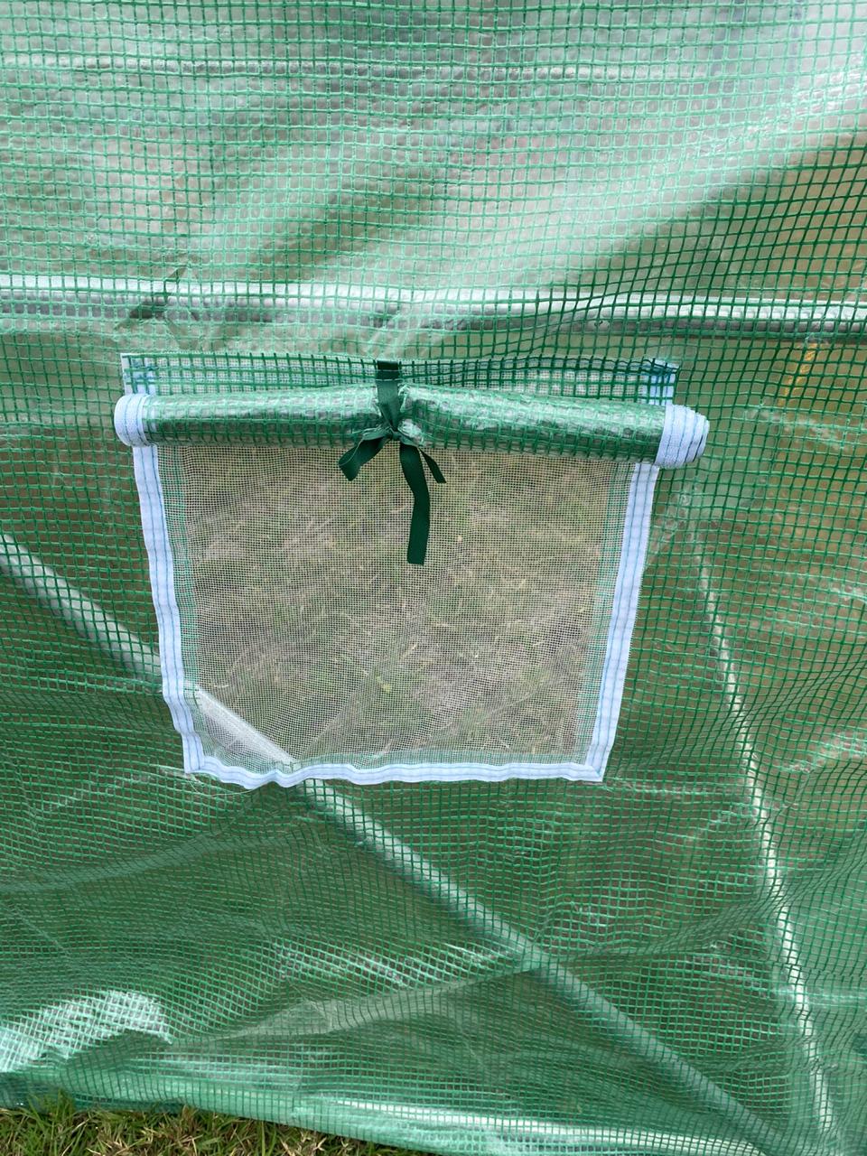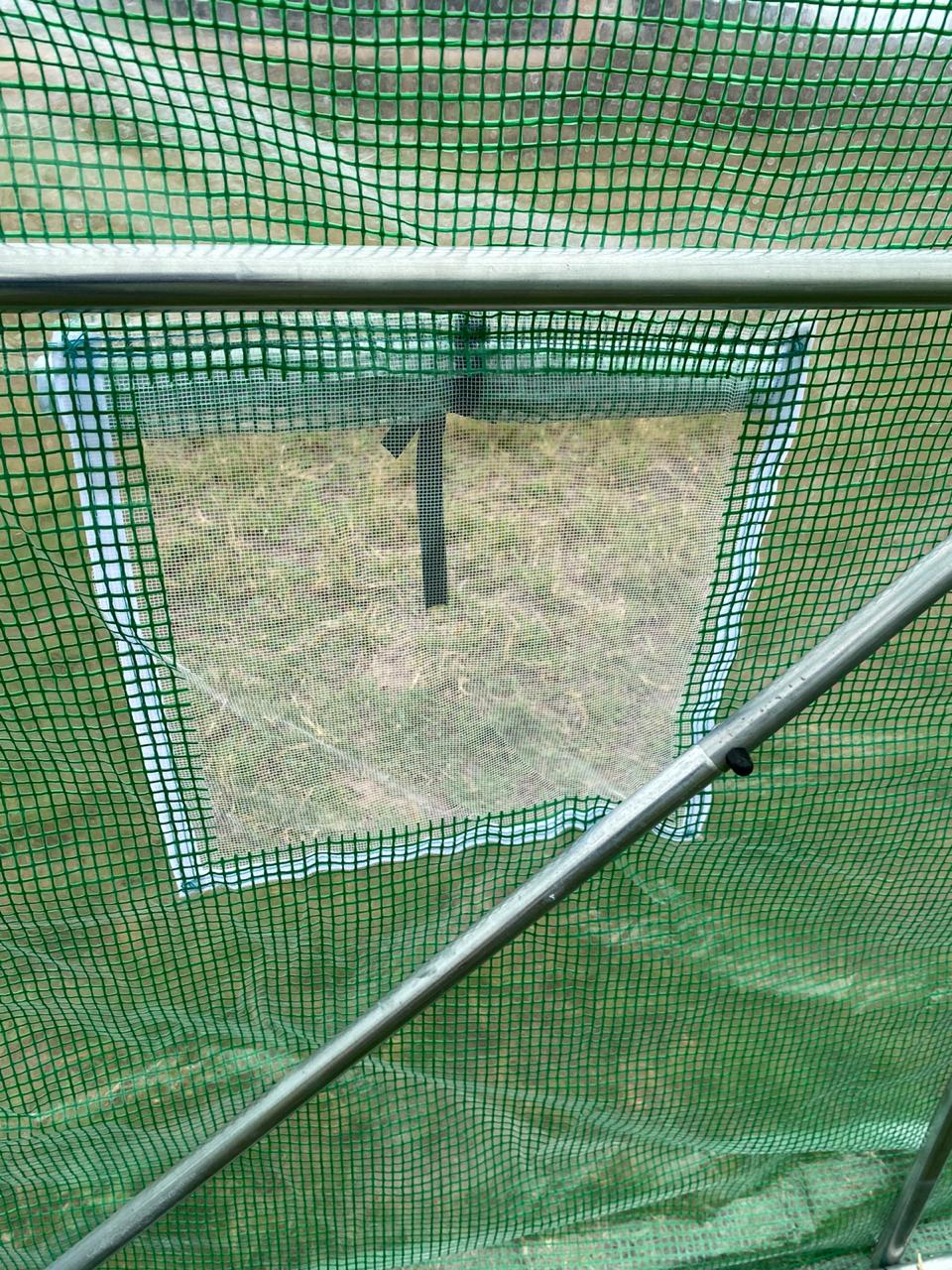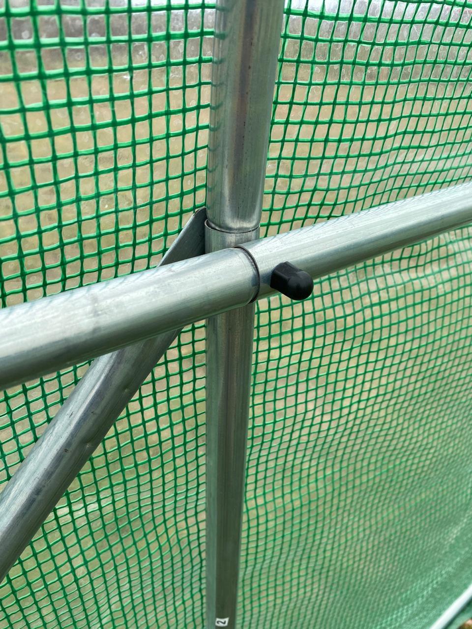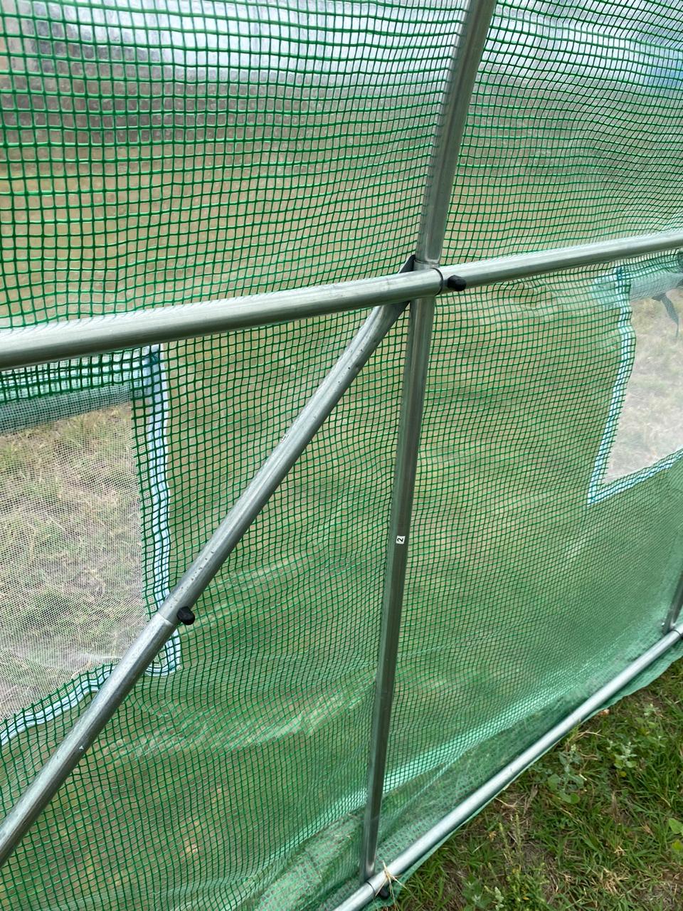 Perfiles de acero galvanizado diámetro 1". Cobertor reforzado con Malla Plástica de Polietileno de 140g x m2.