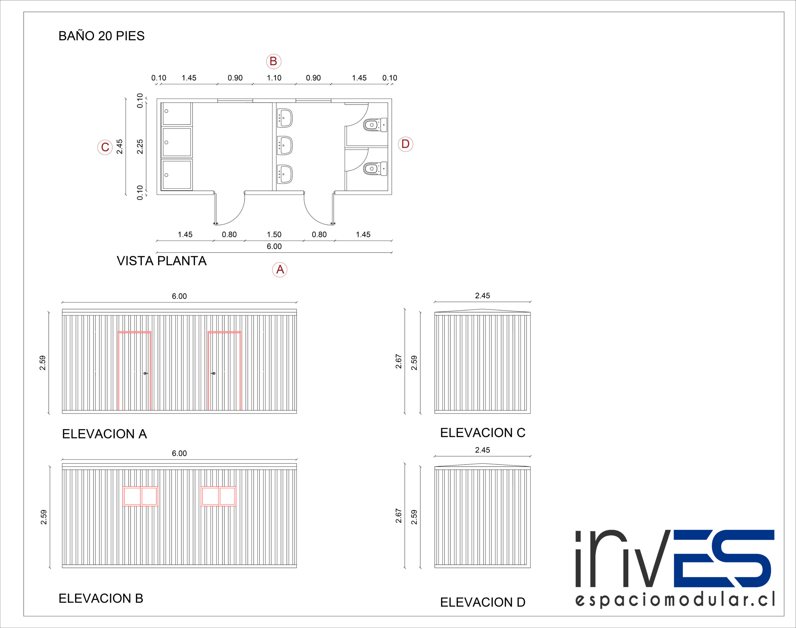 MÓDULO BAÑO+DUCHAS+VESTIDOR 20 PIES