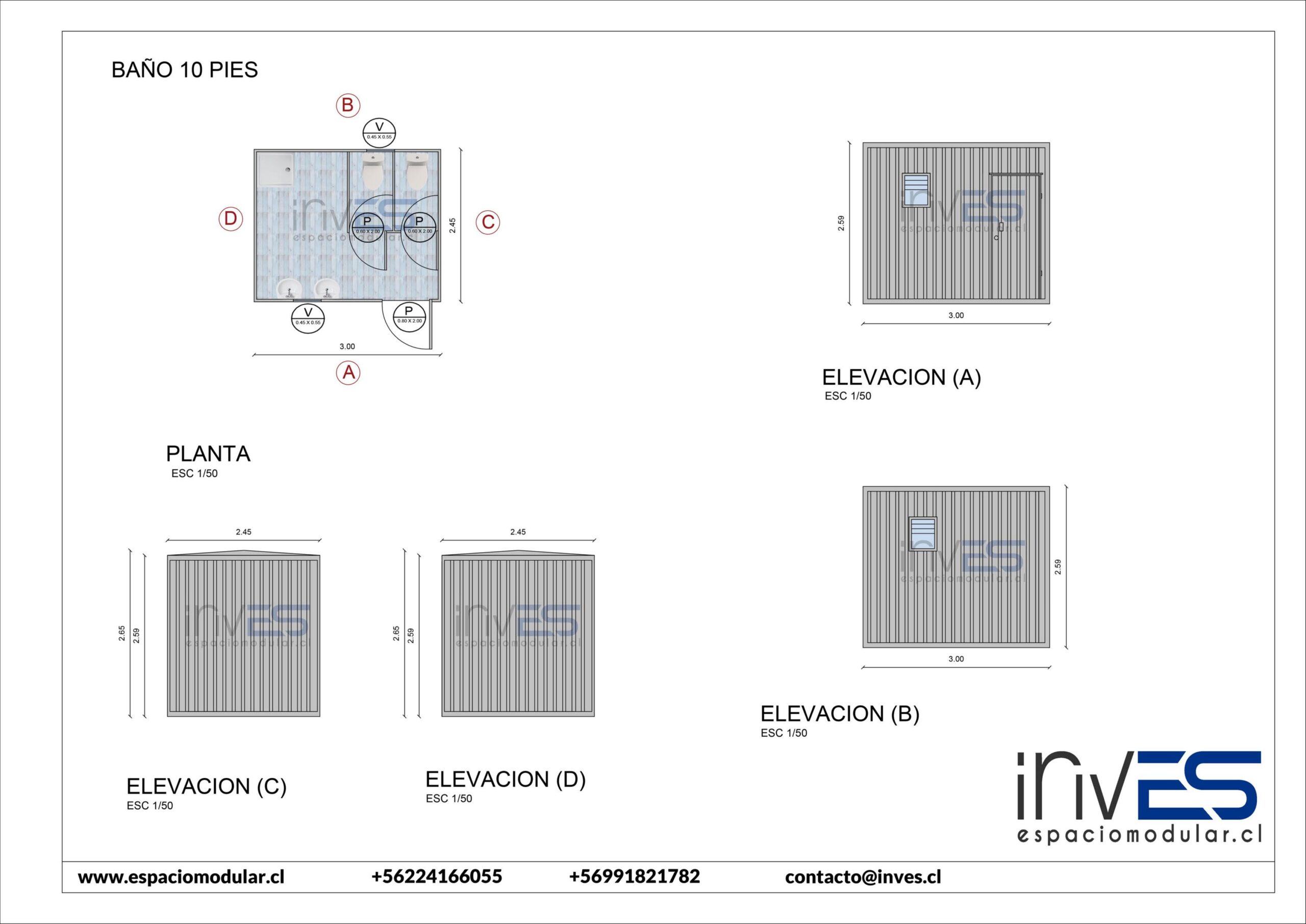 MÓDULO BAÑO DOBLE ECONÓMICO 10 PIES