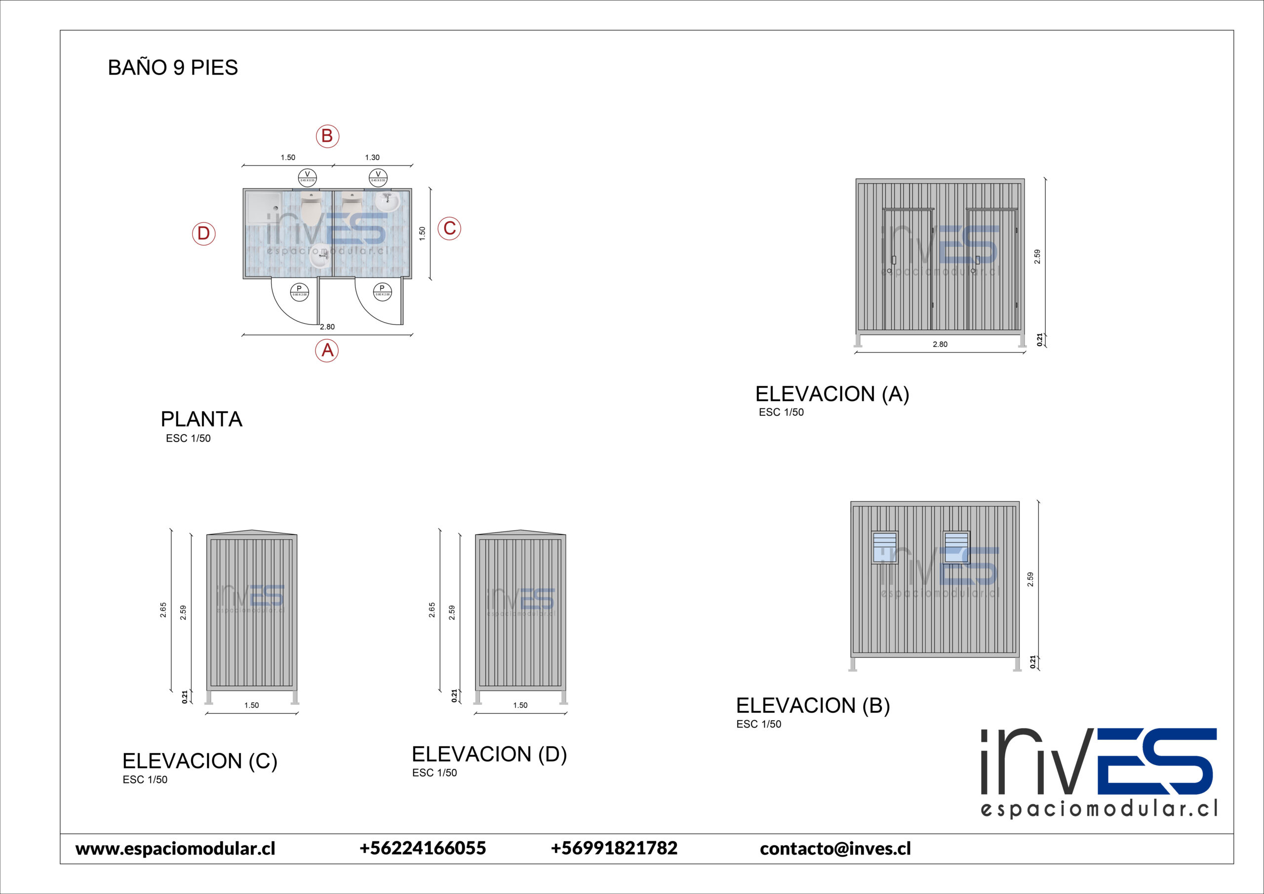 MÓDULO BAÑOS H/M 9 PIES