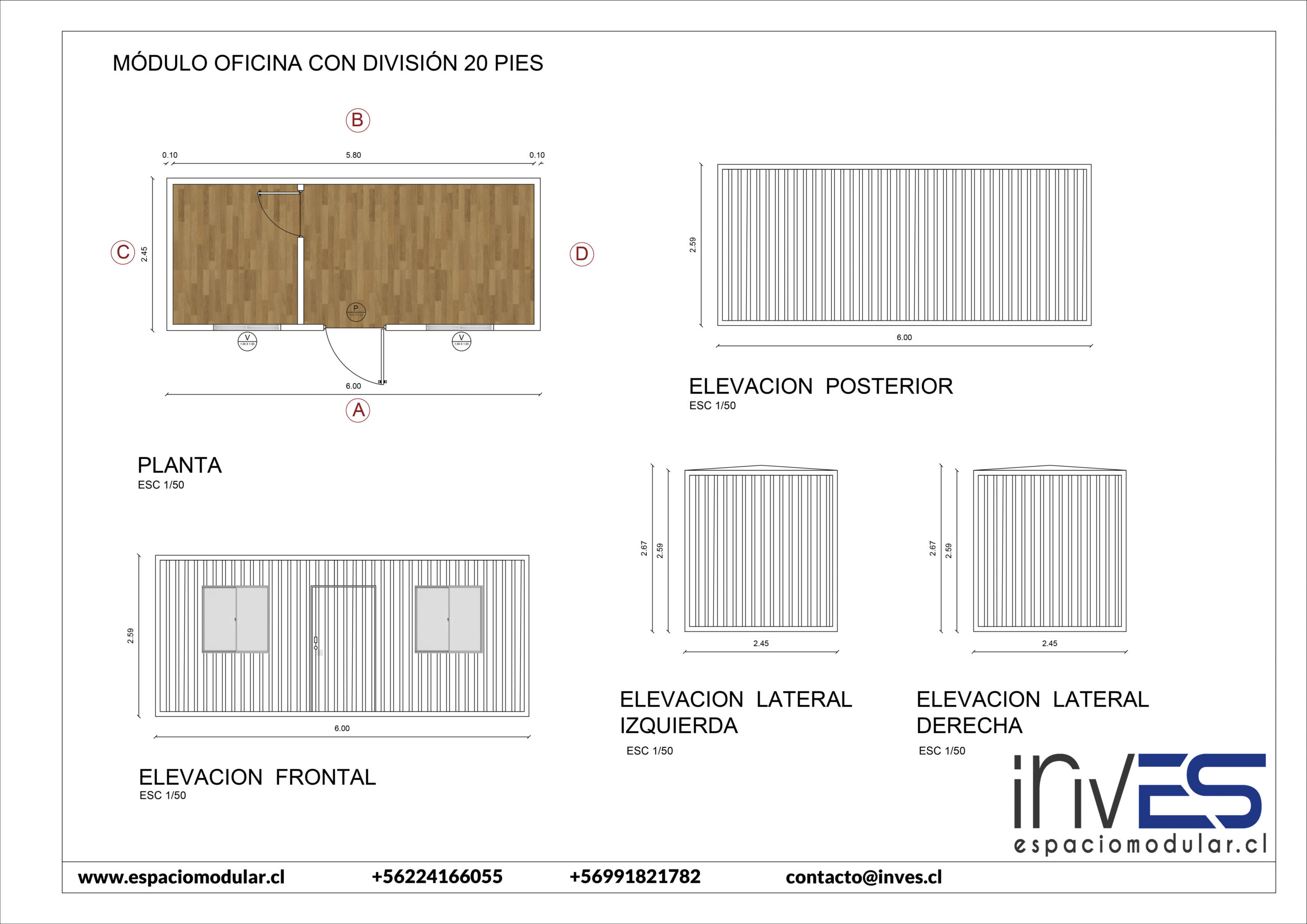 MÓDULO OFICINA CON DIVISIÓN 20 PIES