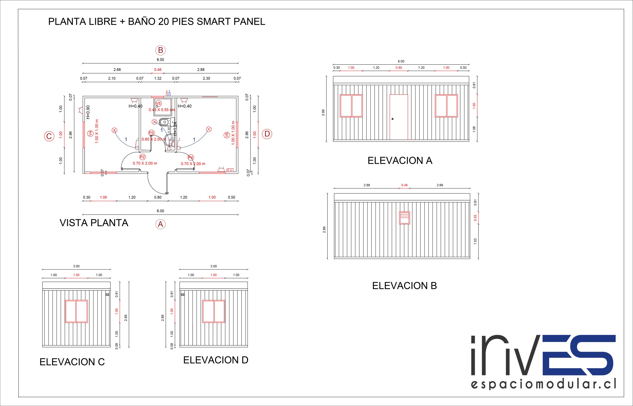 MÓDULO PLANTA LIBRE + BAÑO 20 PIES (SMARTPANEL)