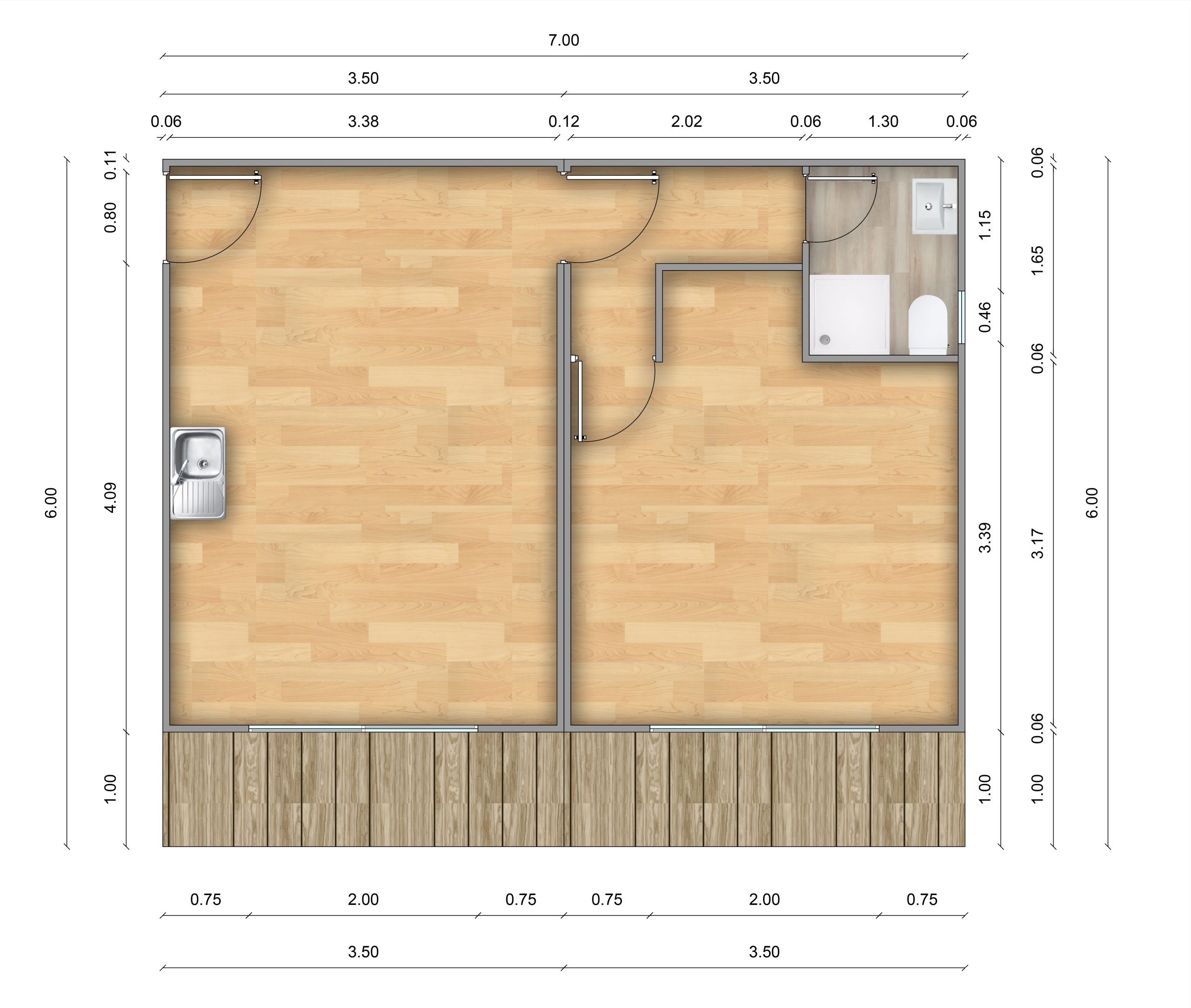 • – SON 2 MODULOS DE 3,50 X 6,00 M