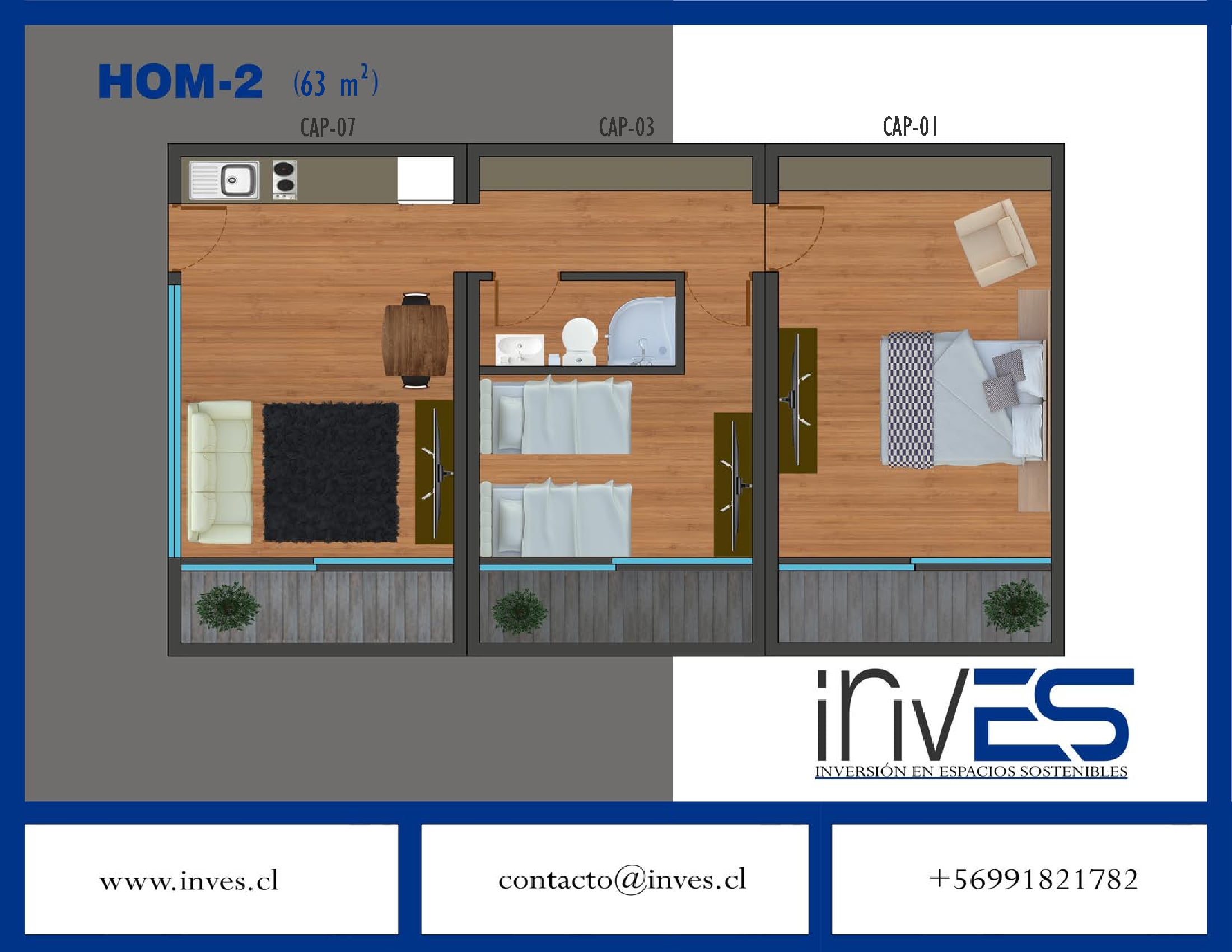 Producto nuevo, fabricado por Espacio Modular. INCLUYE:  3 modulos de 6,00x3,50m Baño completo, wc, lavamanos, ducha Cocina con lavaplatos y su mueble de base
